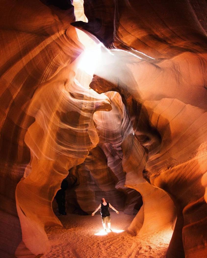 The Arizona region, United States, has the most beautiful canyon (valley) in the world called Antelope Canyon. This natural charm is formed from the erosion of the Navajo sandstone through flash floods and sub-aerial processes (the formation of objects on the ground). The faster water flows automatically increases the volume of sand, which continues to grind into the basin path.