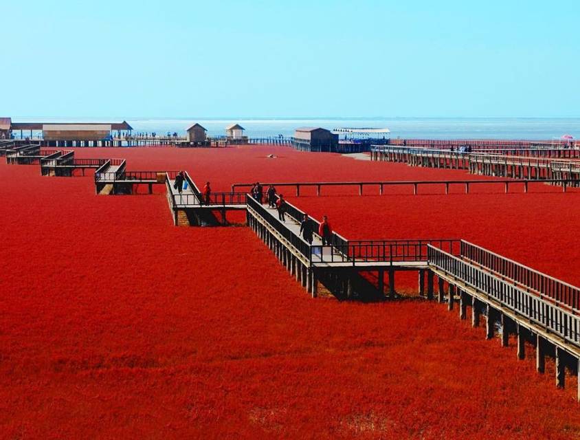 Generally, you will find white or brown beaches, but it’s different from the Red Panjin Beach in China. As the name implies, this beach actually has a red color on the sand beaches. Not an artificial color, the red color of the sand is produced from the sea-blite grass, which covers the 6,000-hectare beach area.